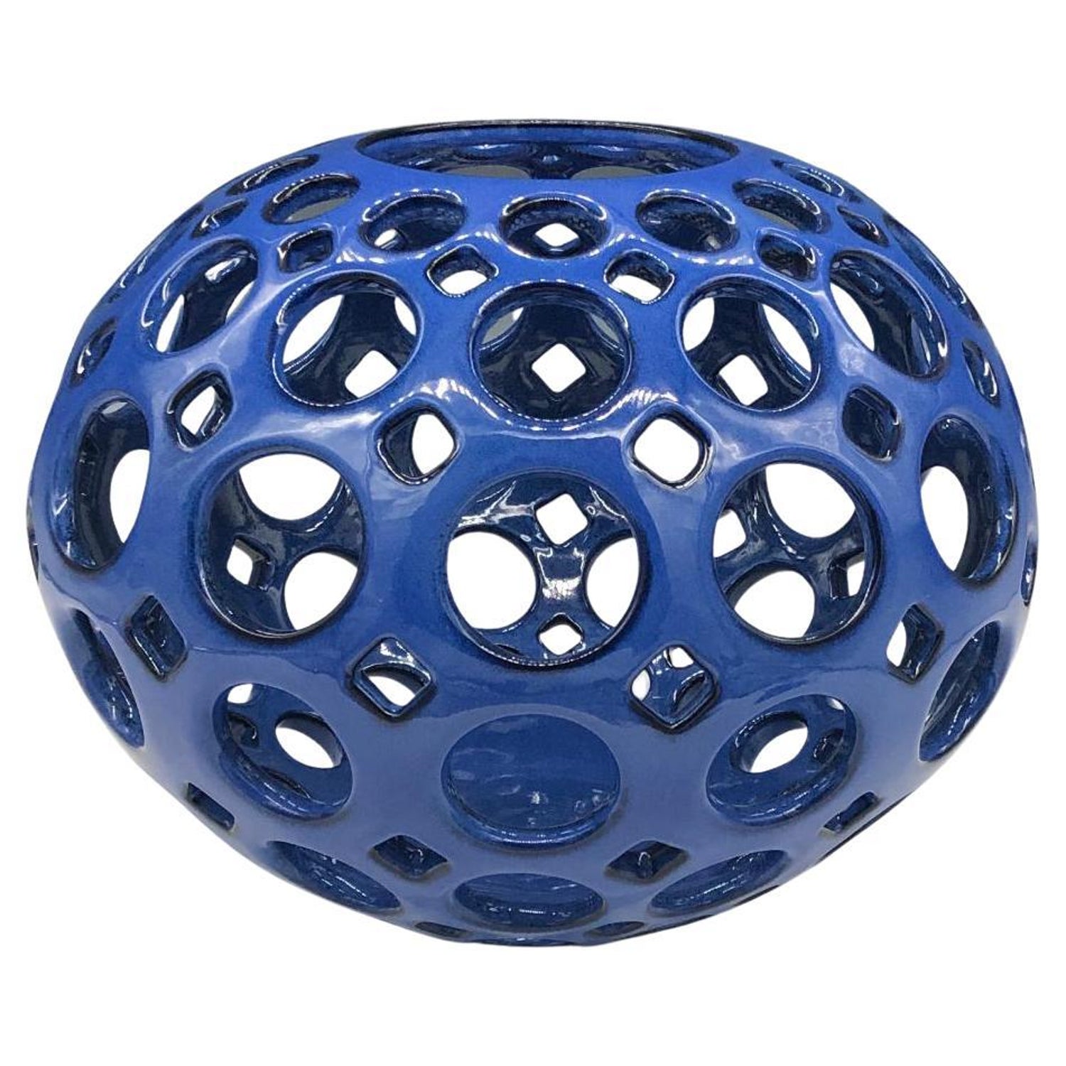Large Pierced Ceramic Tabletop Orb Sculpture Cobalt Blue For Sale At 1stdibs